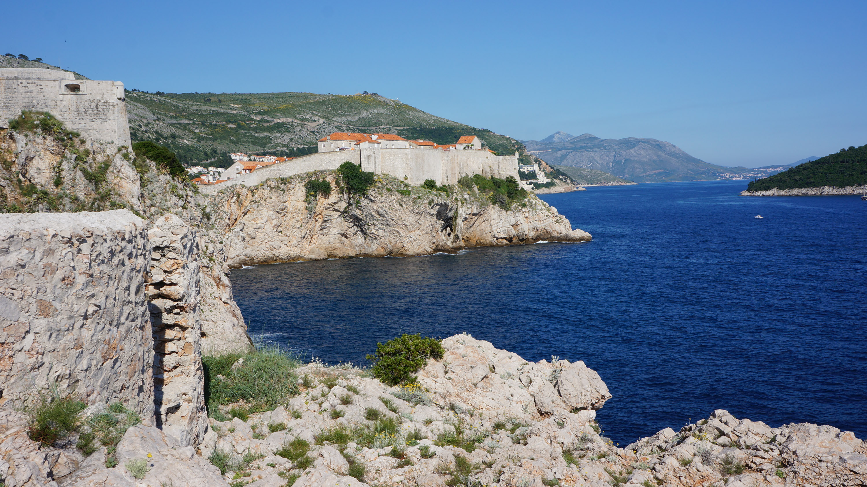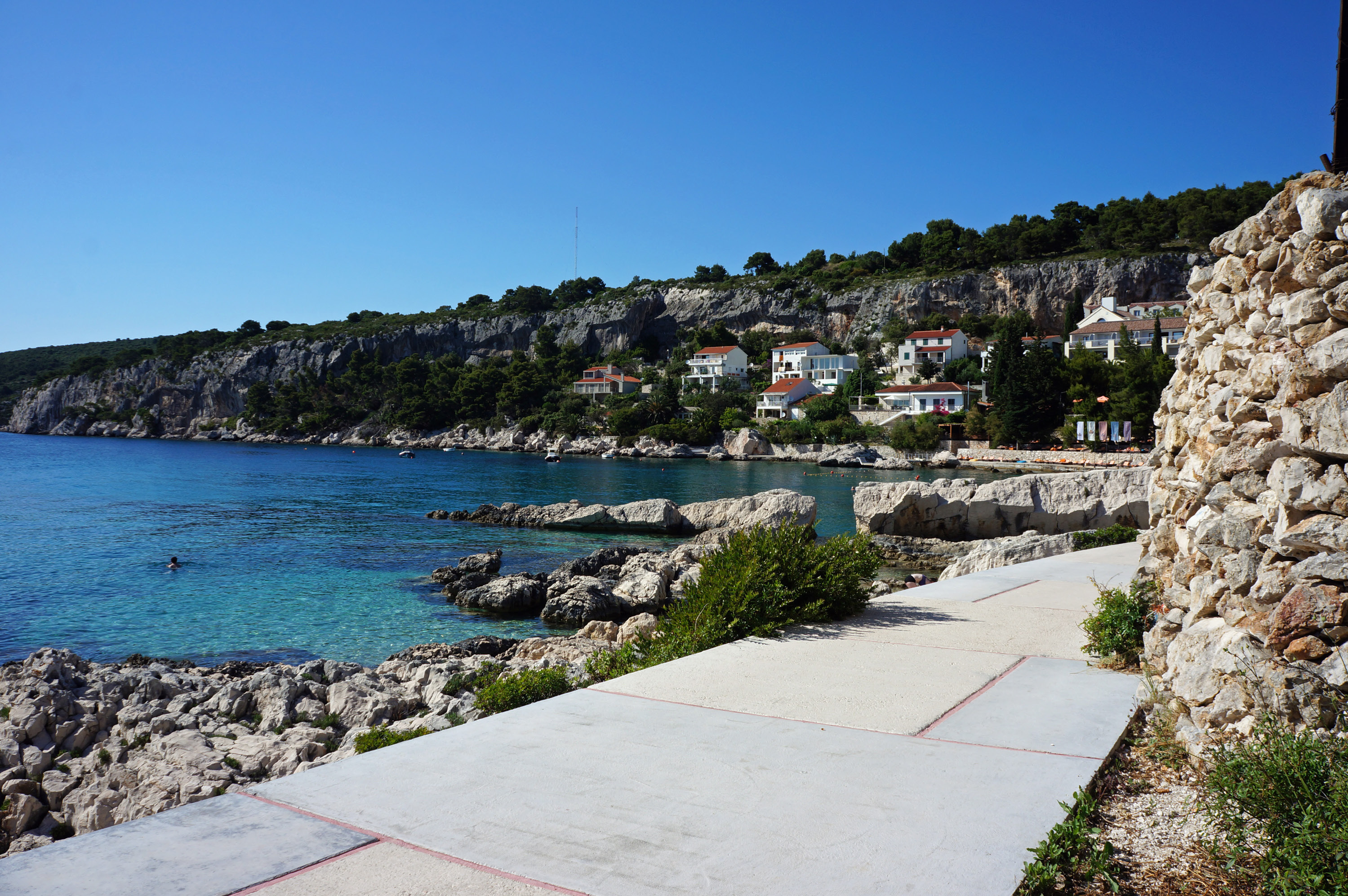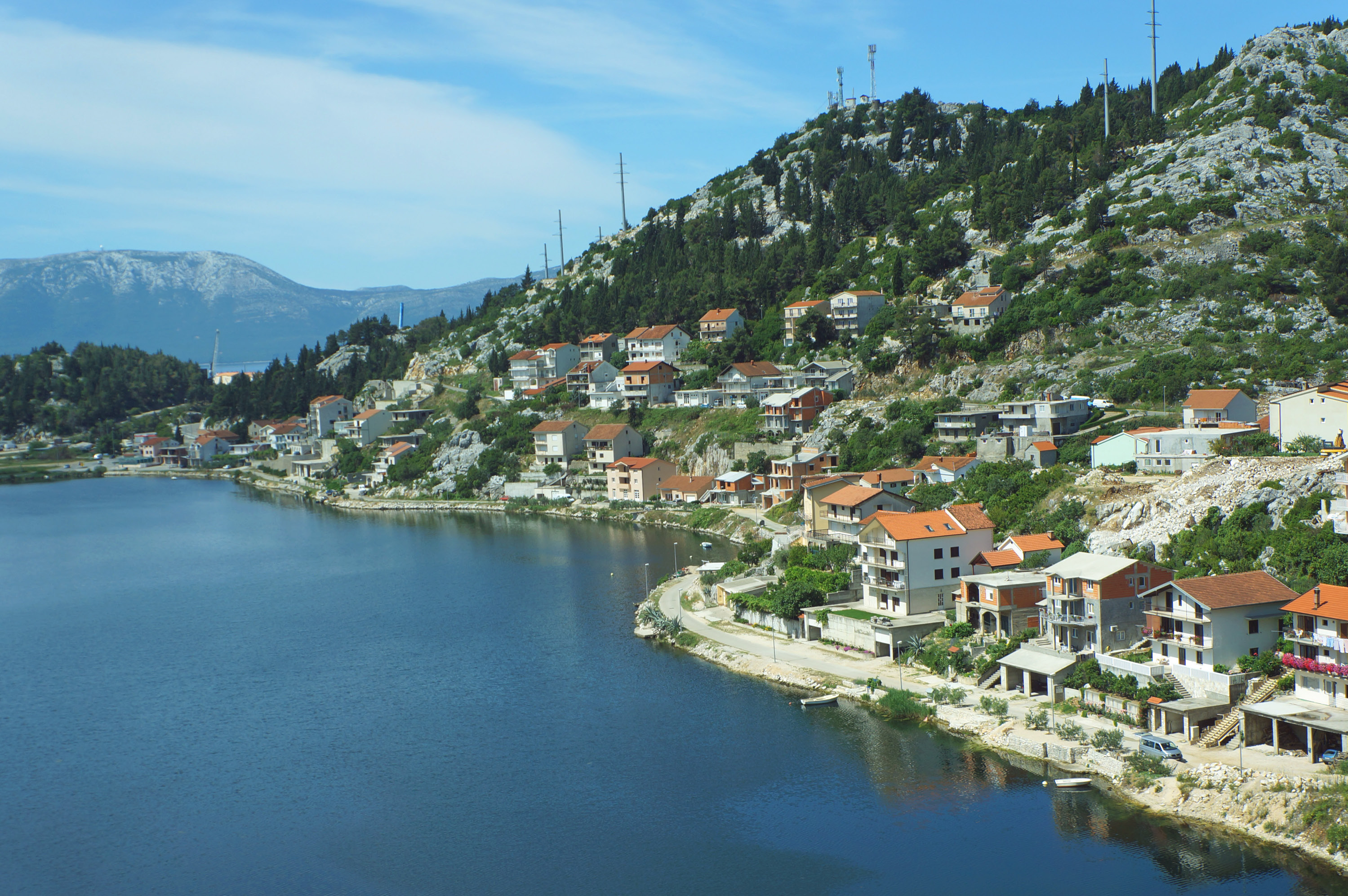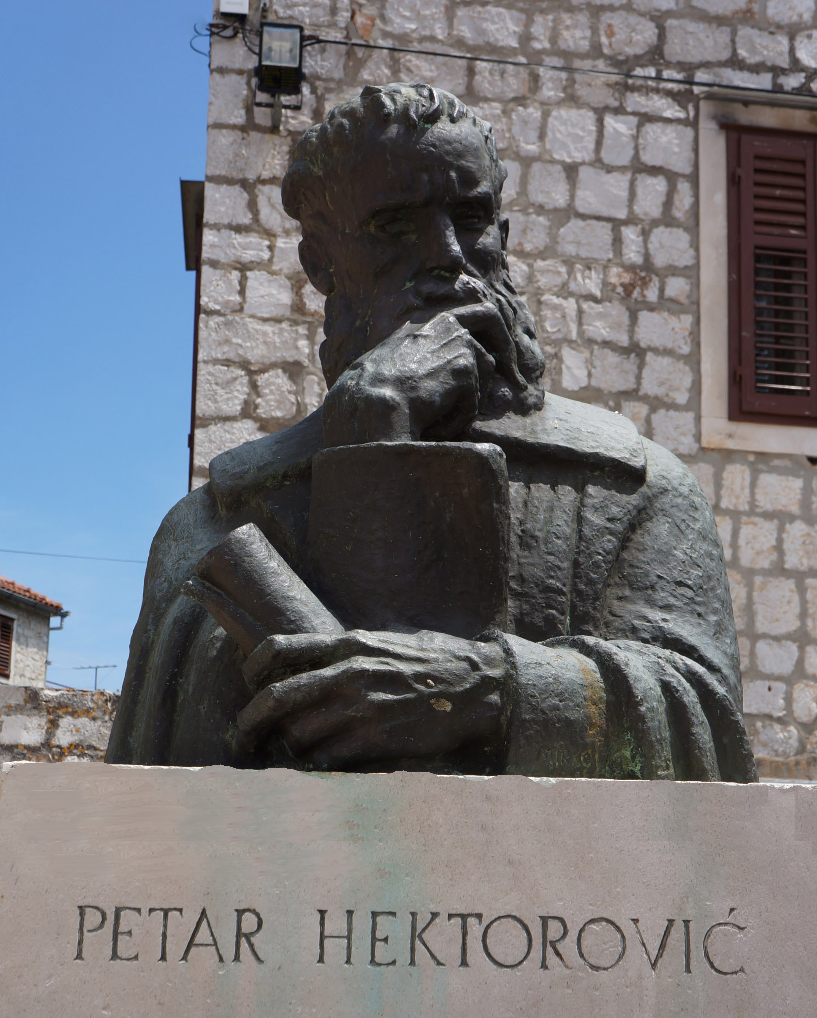 TO GET HERE from Dubrovnik, we motor up into the mountains above and to the North of the city. From that height, we follow the Dalmatian coastal highway Northward, between high, rugged mountains and the sheltered, coastal waterway created between the mainland and Croatia’s many barrier islands. It is stunning! The mountains rise straight out of the sea and vault high enough to isolate the inland climate from the coastal climate. Villages, towns, and cities cling to what little coastal plain there is, and to the foothills or mountains themselves.